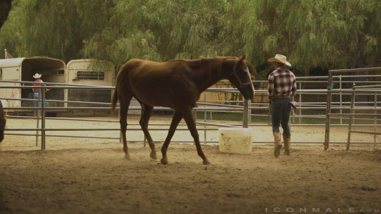 Two roughneck cowboys engage in a very romantic love scene in Painful Love Scene 3 by IconMale.