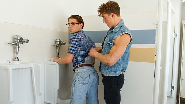 Nerdy Teen Boy With Gasses Gets Surprised And Pounded Hard In The School Bathroom By The Class Bully