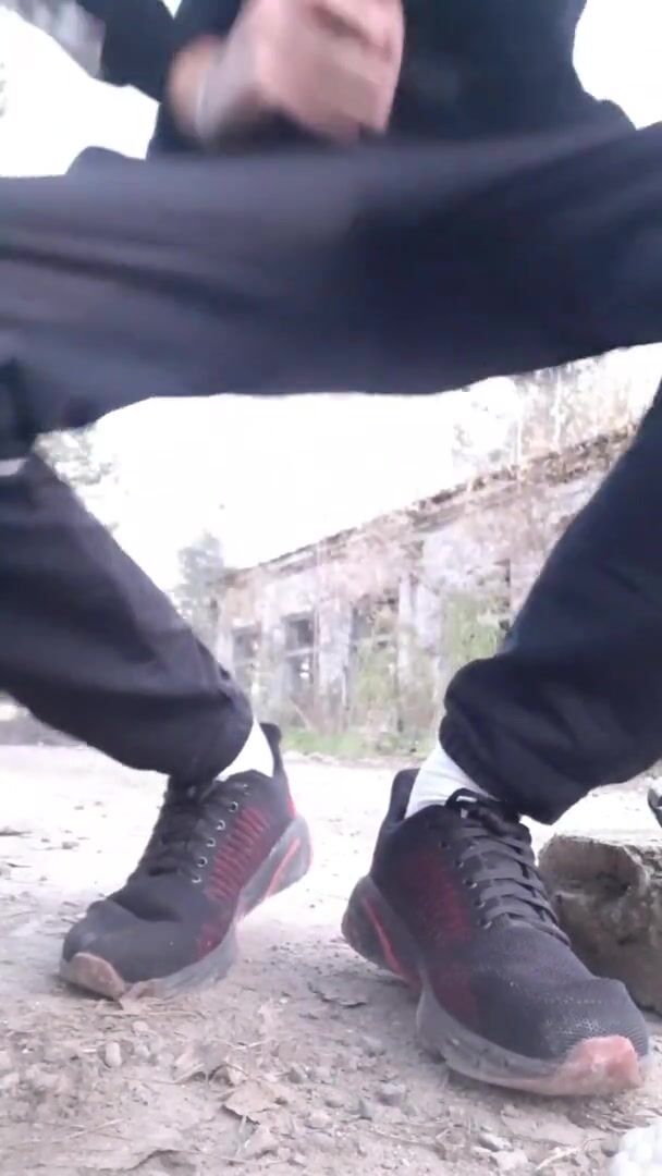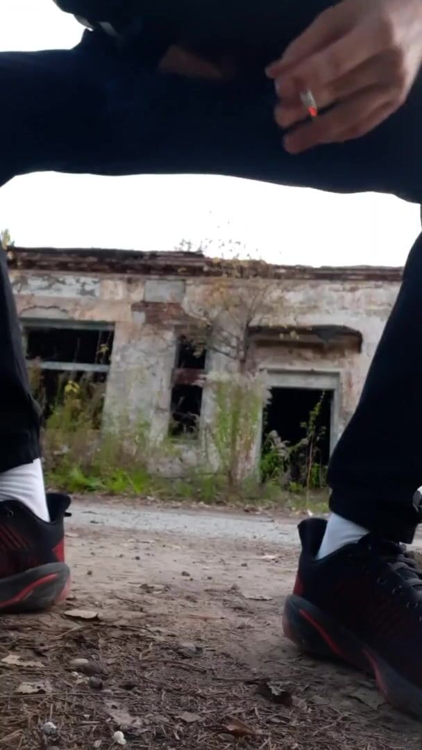 Straight guy fucks an imaginary gay guy in an abandoned house and cums on him