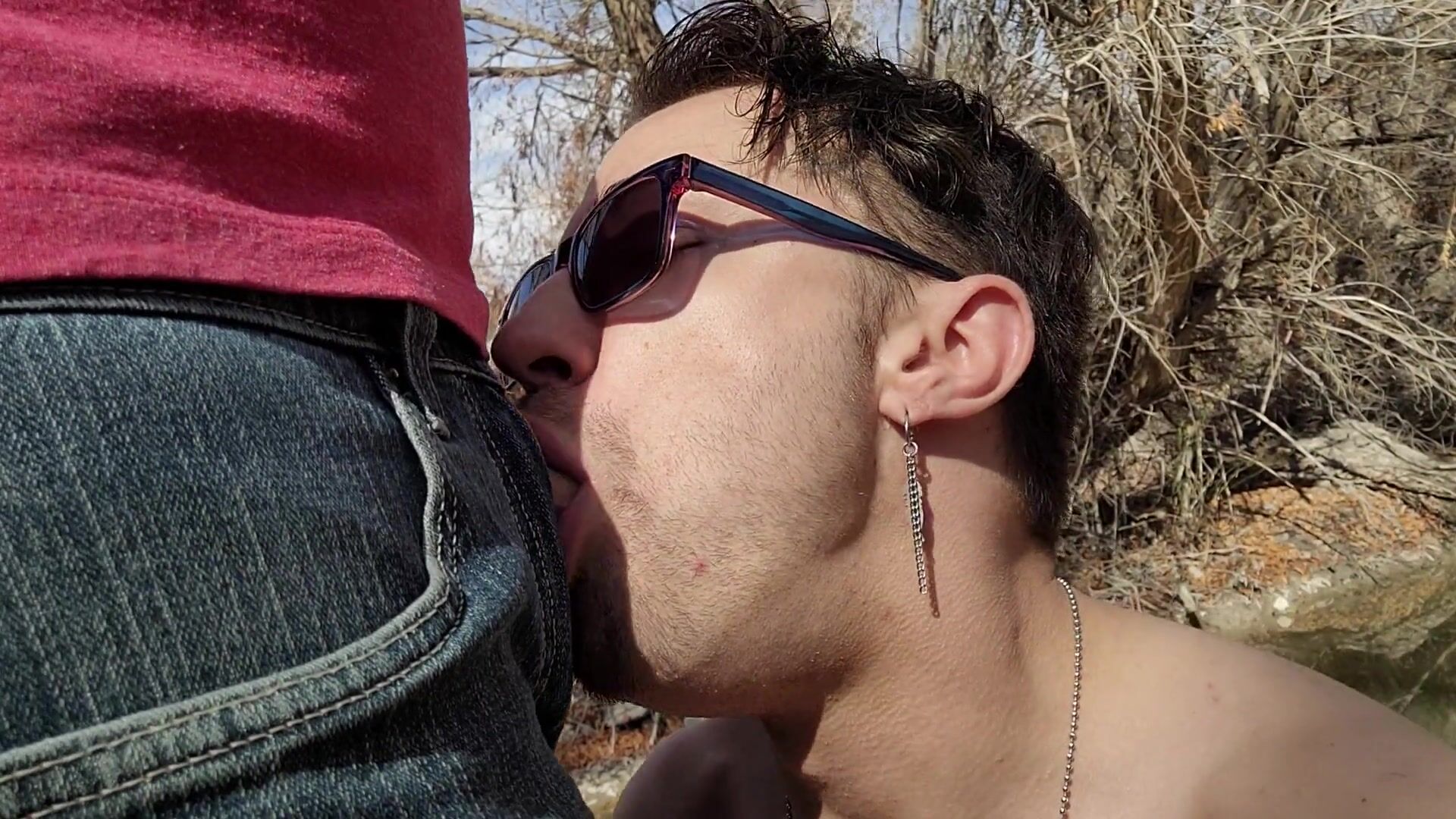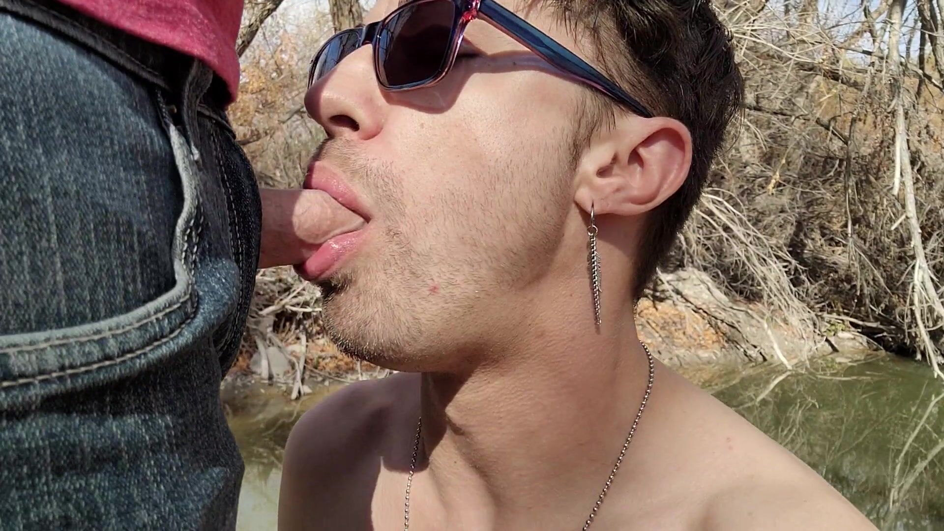 Ftm on a hike sucks dick and gets fucked raw creampie