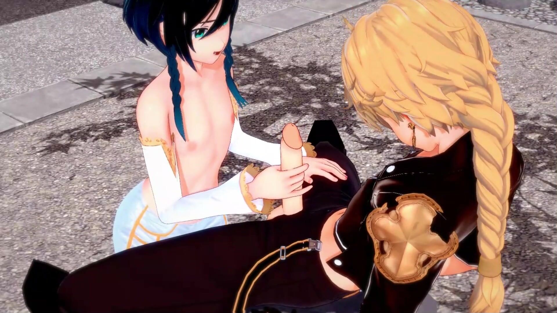 Aether anal fucks sissy Venti, cums on his stomach - Gay Genshin Impact Hentai.