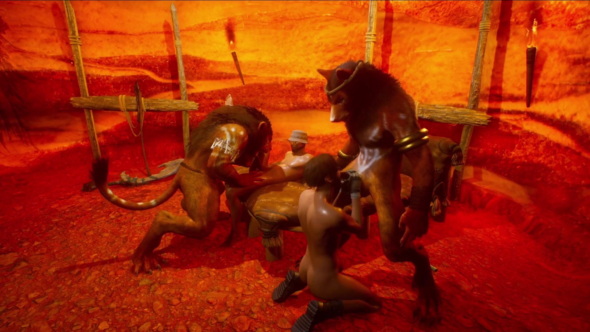 Two prisoners being devoured by monster cocks 3D
