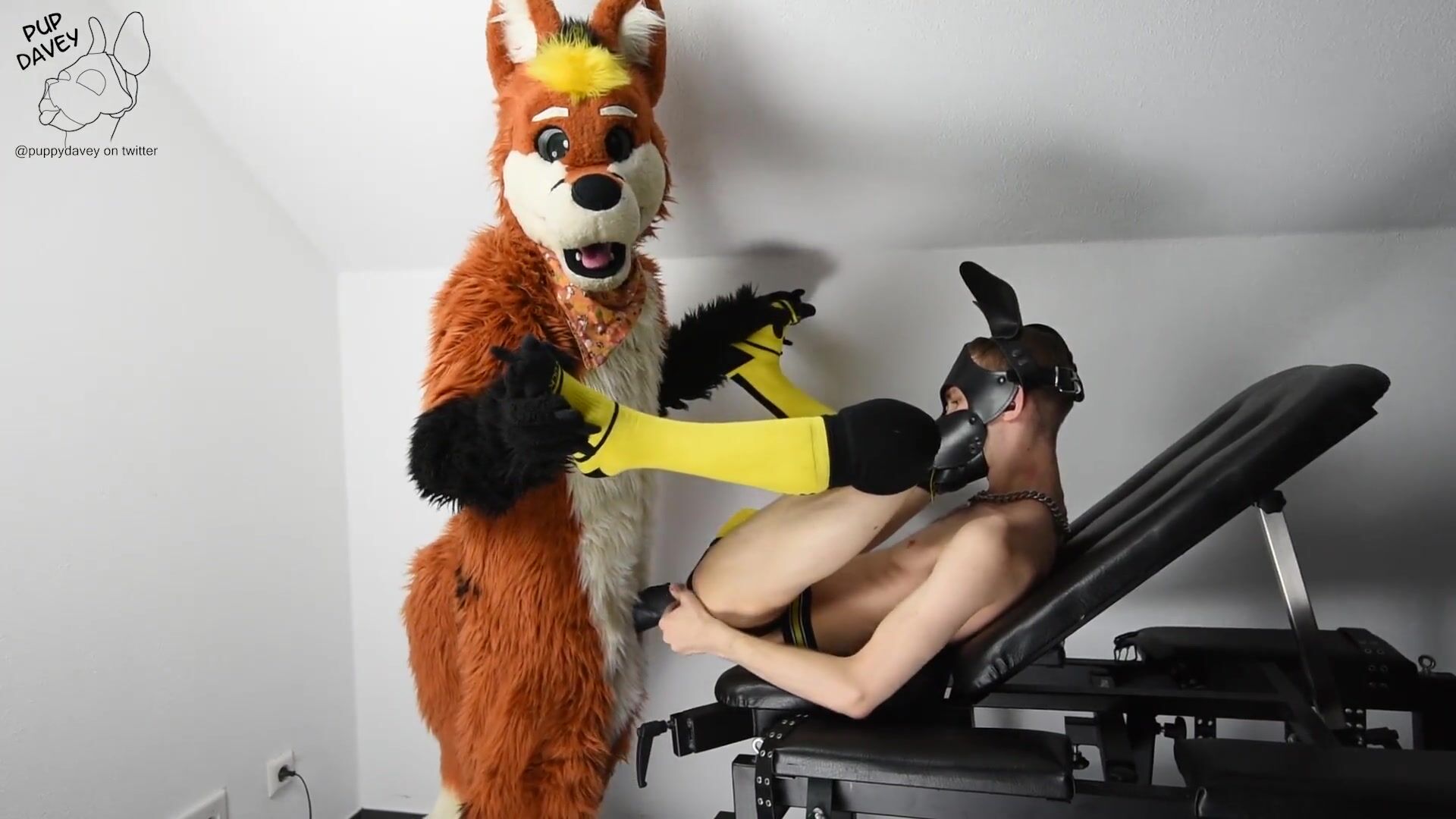 puppy gets fucked by fursuit with dildo