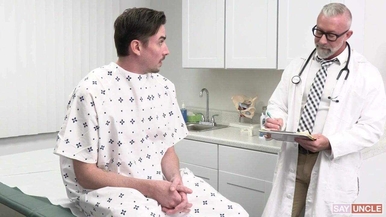 Gay Porn Examination: Older Doctors Handjob Test with Lance Charger and Jack Hunter