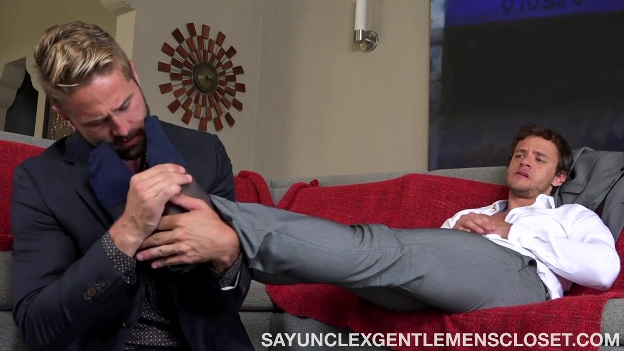 Nate Grimes and Wesley Woods' costumes seem like an obstacle, but they both have a fiery desire to touch each other. This passionate encounter includes lots of sucking and foot worship.