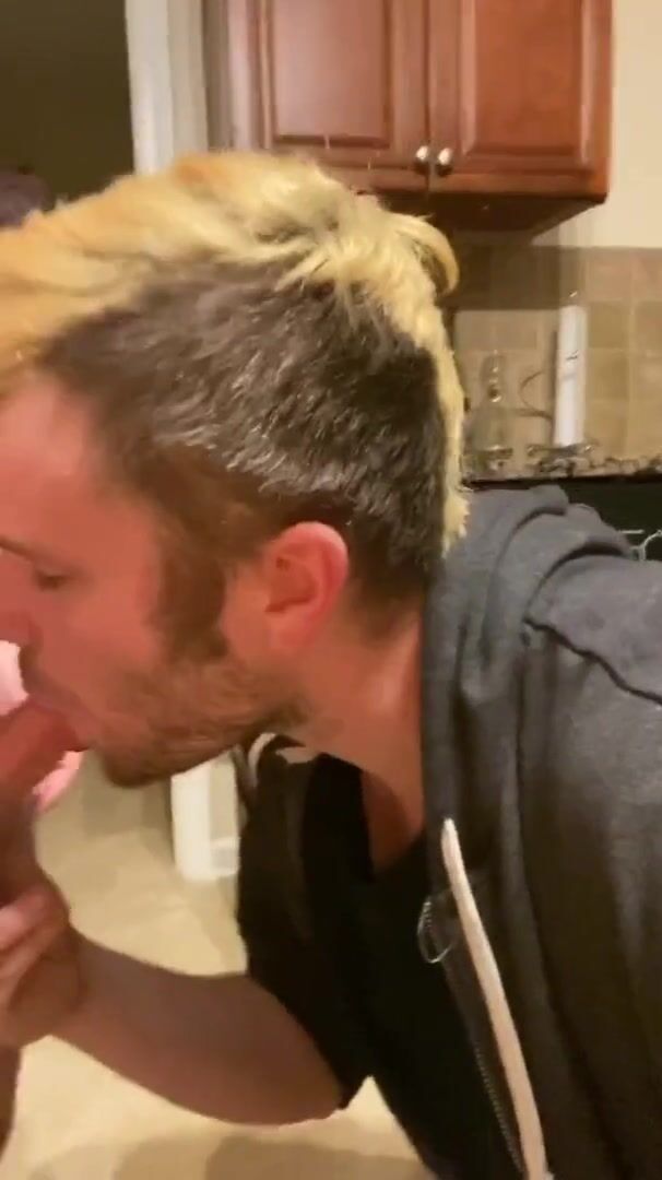 Swapping blowjobs in the kitchen and giving him a huge cumshot facial