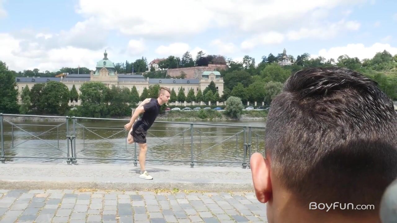 translation and reformulation: "I wouldn't say it's obvious that fit runner Mark Troy stopped at that particular spot exclusively because he noticed handsome young jock Luke Geer enjoying the view, but you have to admit it's understandable that he would. He picked the right guy to cruise,