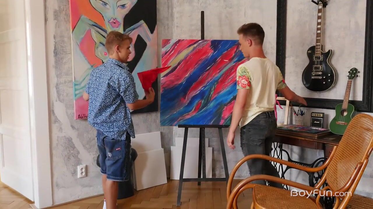 You never know where you might stay when you rent a vacation house for the weekend, but friends Jacob Dolce and Richard Hicks chose an excellent one. It seems that the owner is an artist with eclectic taste in his collection. The boys admired some of the objects, but with the tempting bed