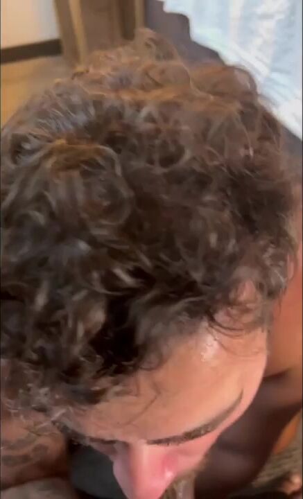 "Submissive man receives a big dick to suck."