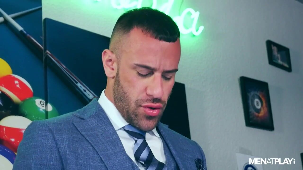 Why play pool with only one cue stick and a ball while you can use three of each? Business partners David Linset and Steve Jouret are playing a game when Gustavo Cruz asks to join them. While they play, the three men exchange seductive glances - looking at each other around the table.