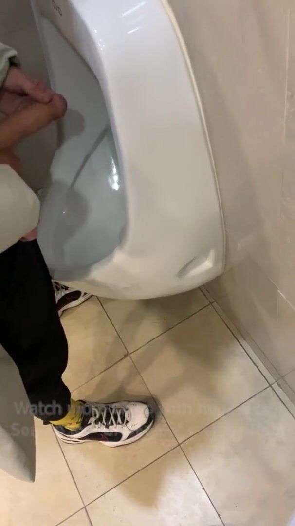 Jerk off a guy's dick in a public toilet. risky