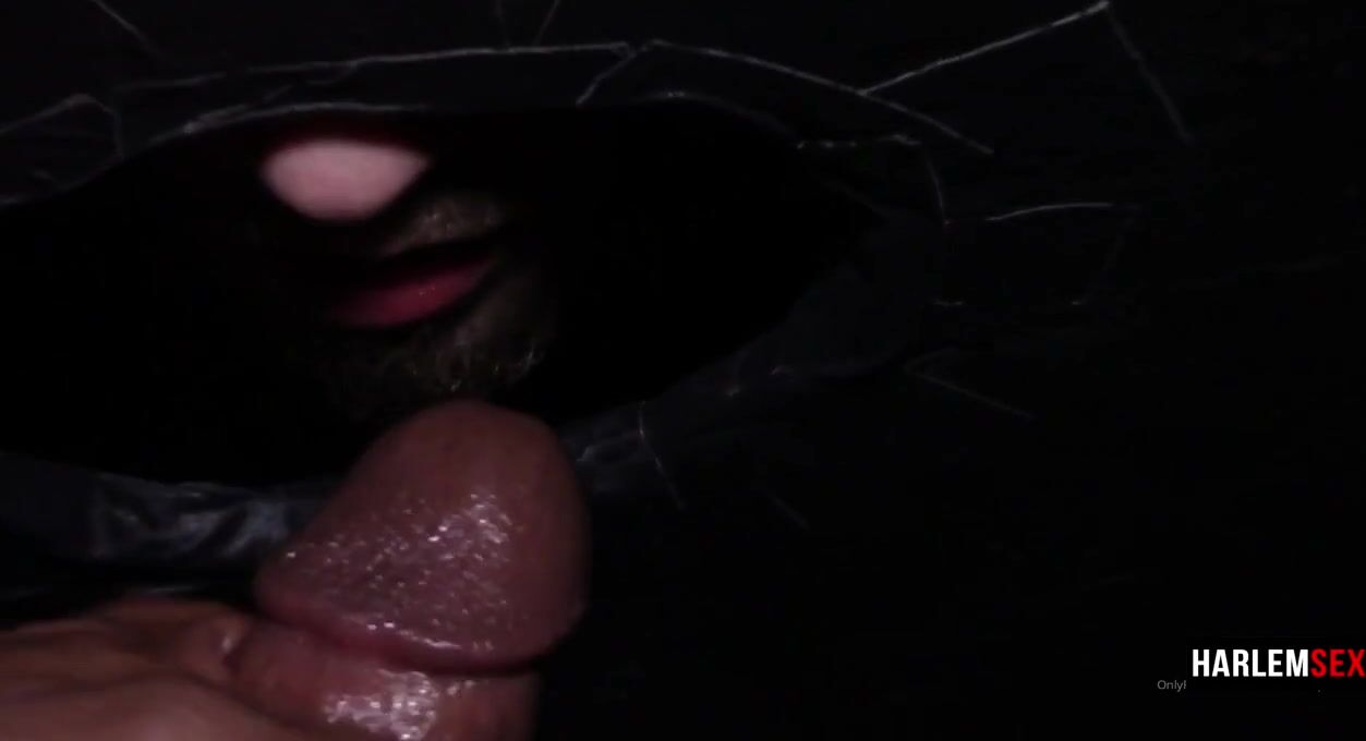 Direct translation: Black guy takes a facial cum shot in a gloryhole. Reformulated and translated into : A man of color masturbates himself to an explosive orgasm in the gloryhole, which is essentially a wall-mounted hole with a perforated partition that separates two rooms, allowing
