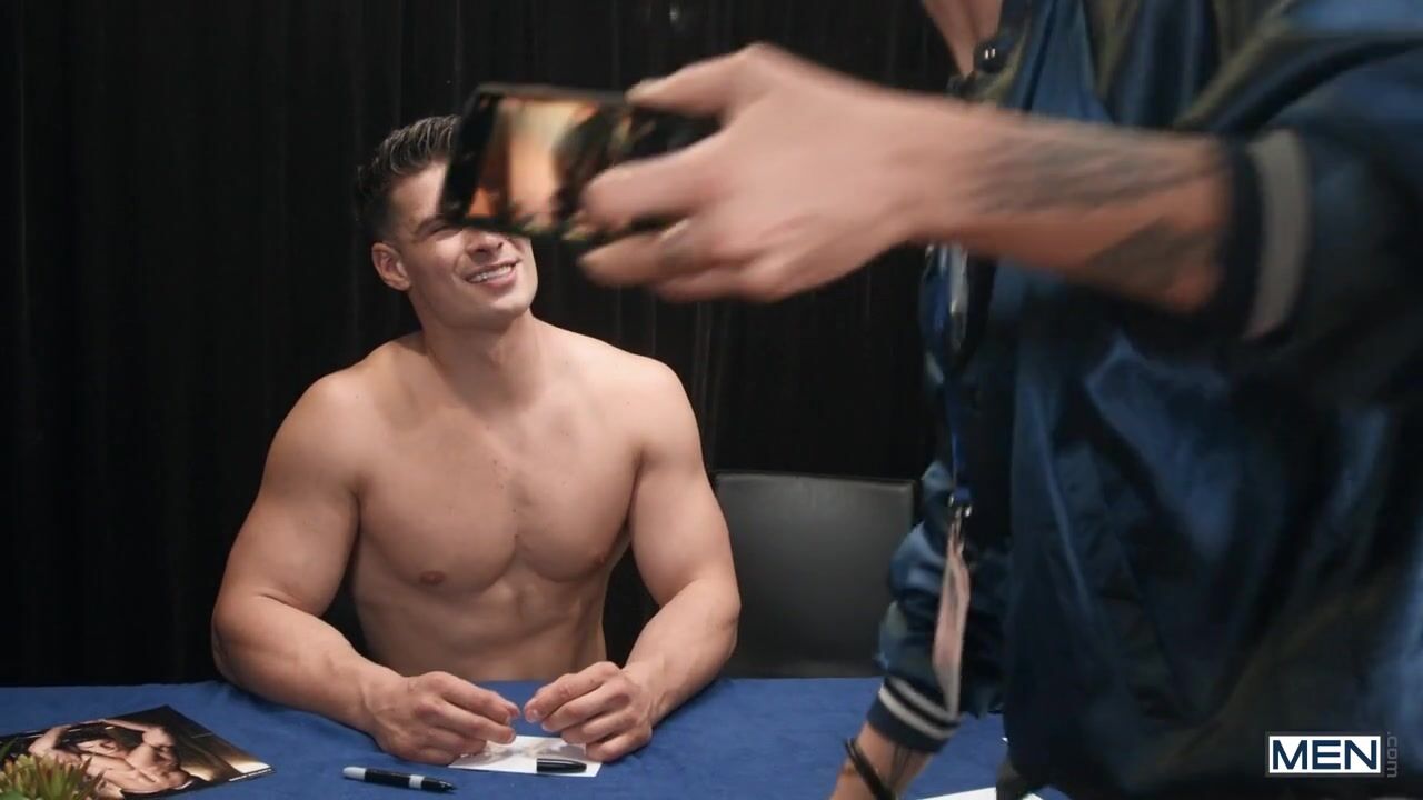 Thomas Feller is definitely the biggest fan of Malik Delgaty! After waiting in line, it's finally his turn to meet his favorite gay porn star and get his replica dildo signed. Malik does it with pleasure and assures Thomas that the beloved toy looks nothing like the real thing. Thomas