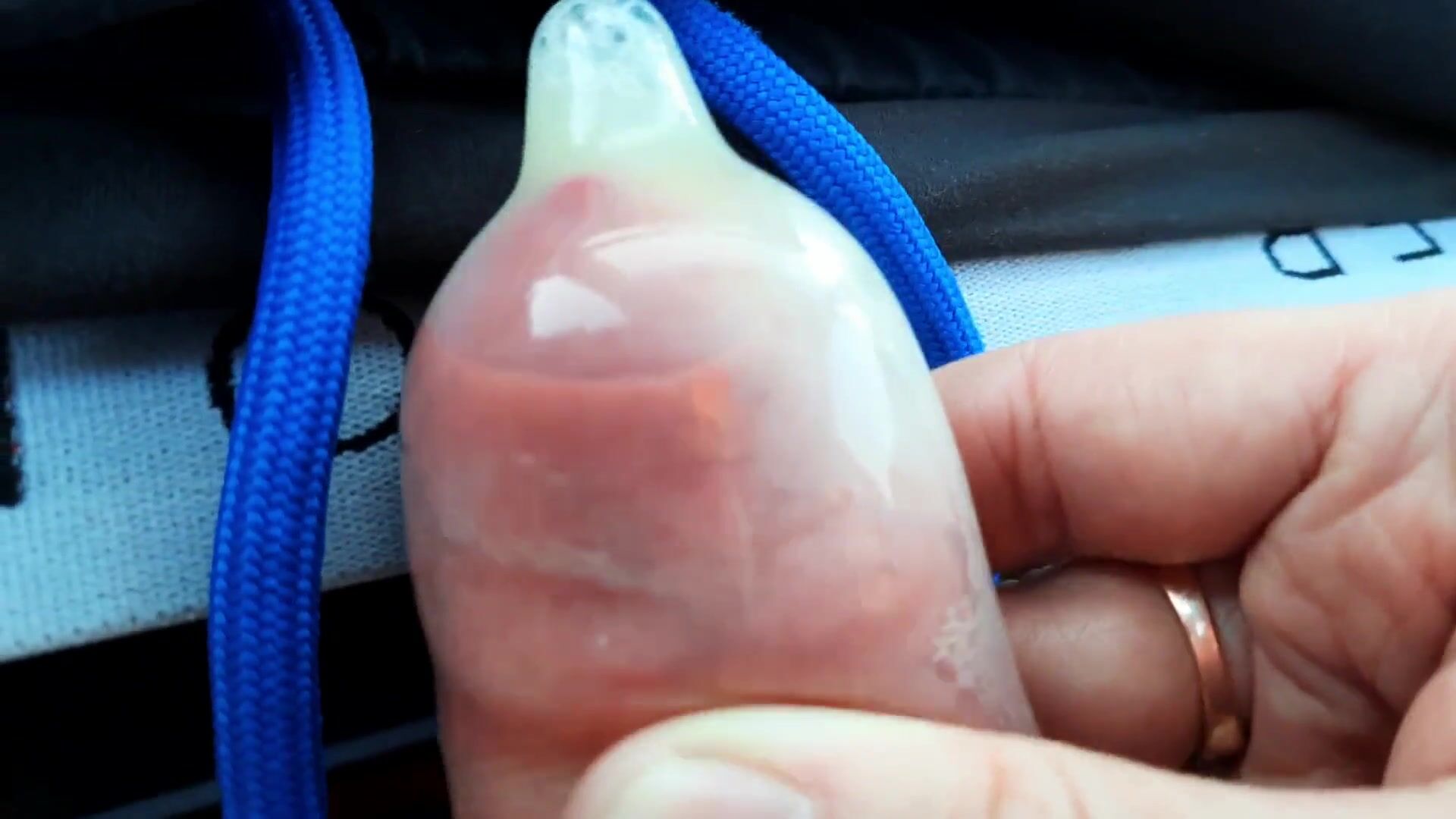 The guy filled the condom to the top with sperm while sitting in the car