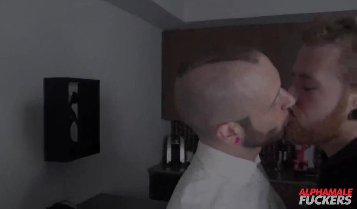 "Hipster men with tattoos and floral beards engage in a bareback anal intercourse."