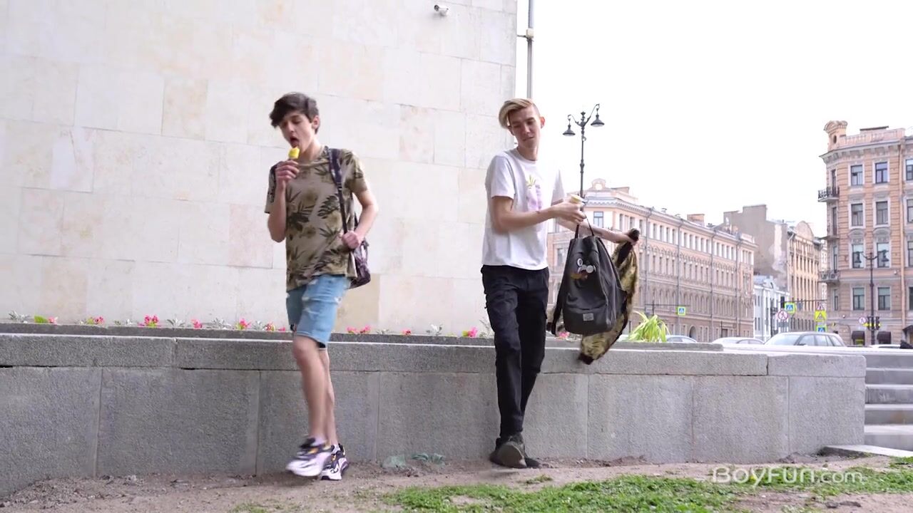 We join the sweet and sexy BoyFun twinks Tony Keit and Jay Hammel in town enjoying a cold treat under the summer sun, but these boys need something meaty soon after. We can't criticize their eating habits and suggest that dessert should come after something heartier, we would all be happy