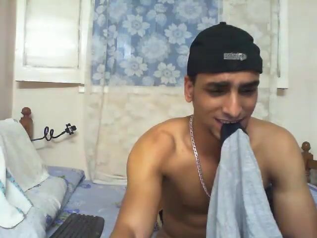 A young North African man gets completely naked in front of his webcam while chatting. He starts masturbating before continuing to do so while jerking off...