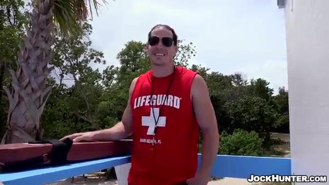 A swimmer who devotes himself to saving drowning beachgoers also doesn't shy away from having a good time with guys on the beach when he gets the chance.