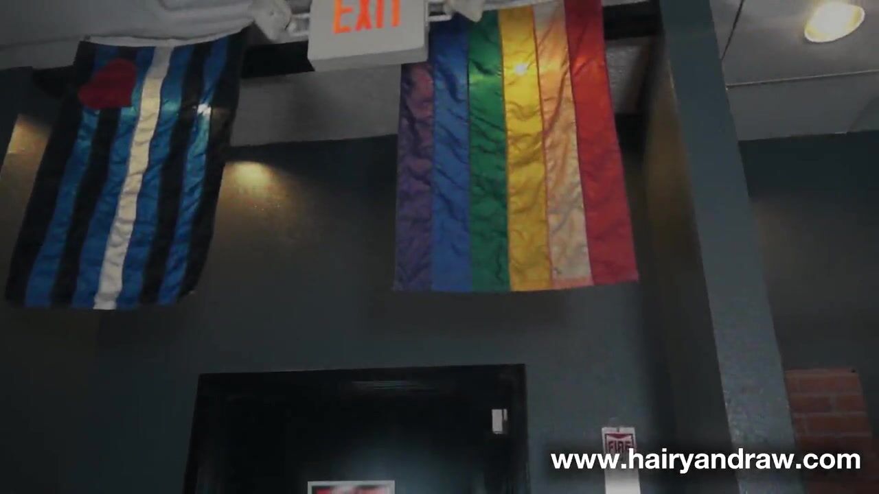 A mustached man blows his load in a sleeveless vest on a sling.