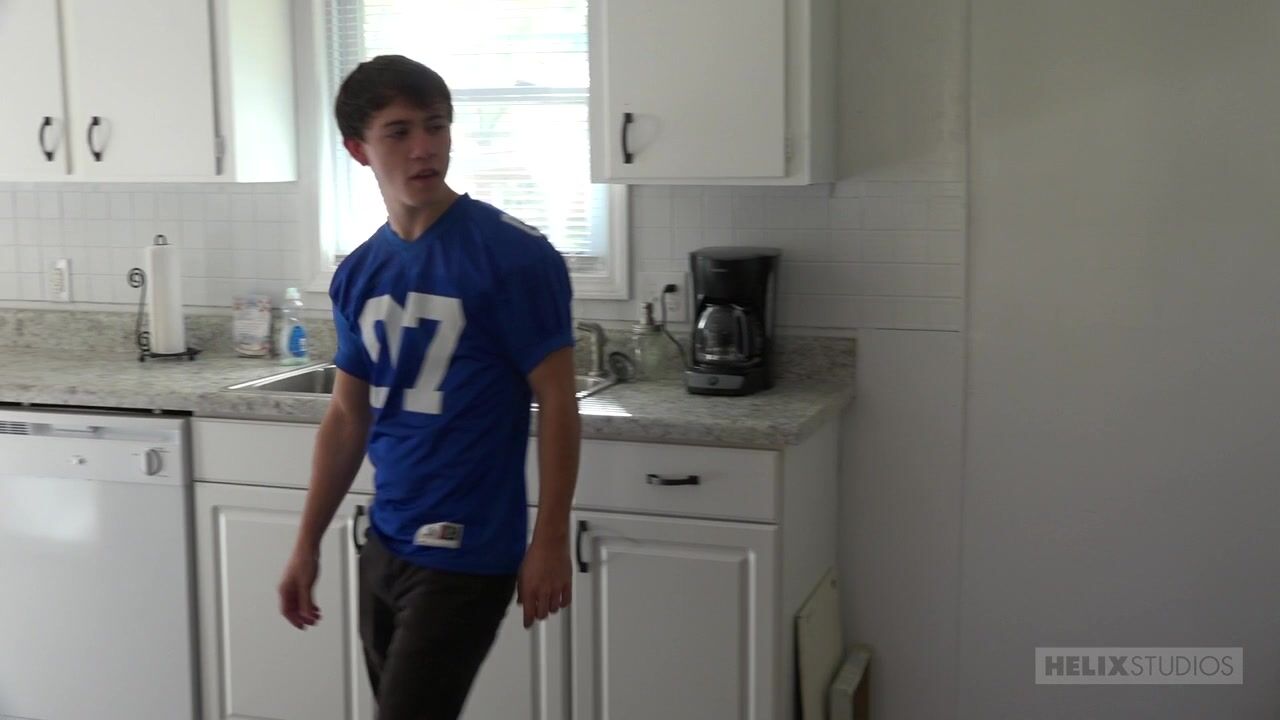 The soccer player Zach Taylor gives a flirty glance at his roommate's small ass while he is doing calisthenics. Mills doesn't have time to react as the young footie takes a hard hit in the balls by the rigid and hairy youngster already.