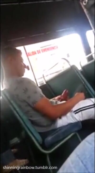 Gentlemen pleasuring themselves quietly on a bus.