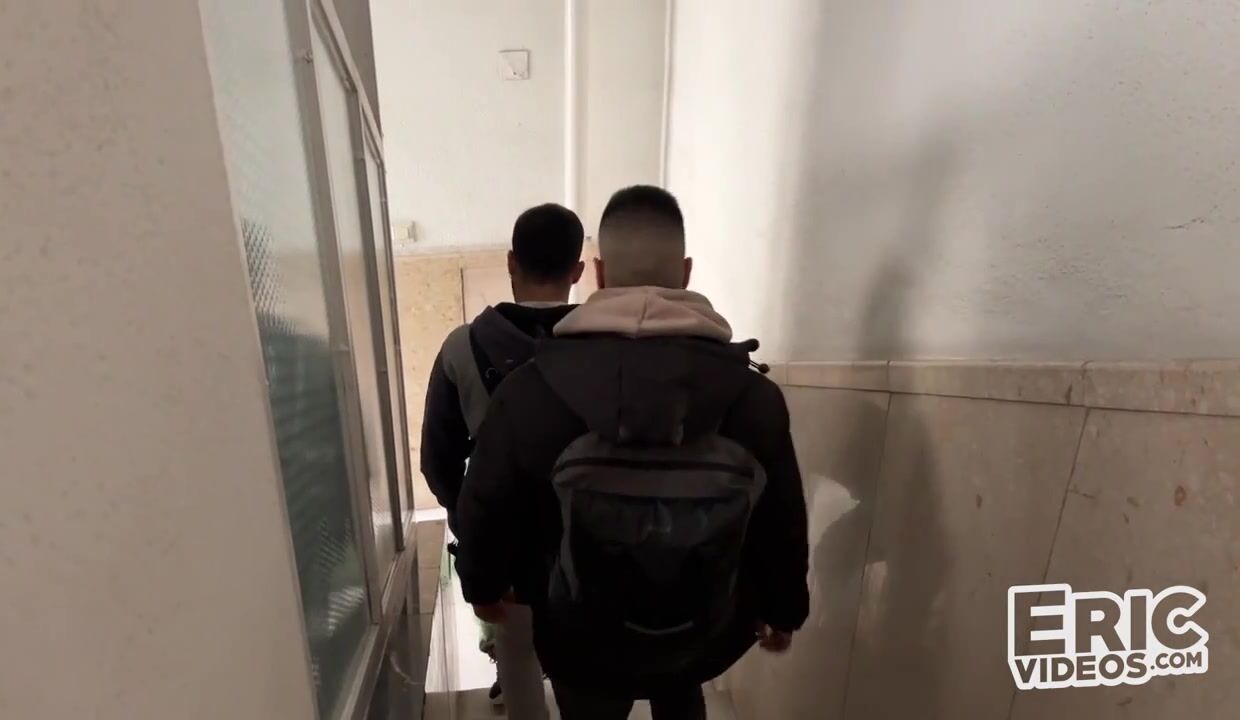 John woke up with a hard dick and when he went out to take out the trash he found two guys blowing each other in the stairwell cage, he also let them suck his dick then brought them inside.