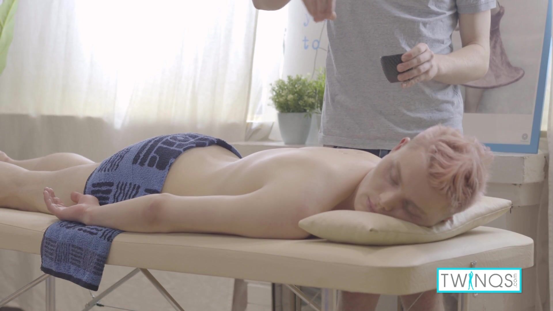Gentlemanly Giant, Michael, Gives Nimble Newcomer, Oliver, a Seductive and Sensual Body Rub and Skin Care Treatment.