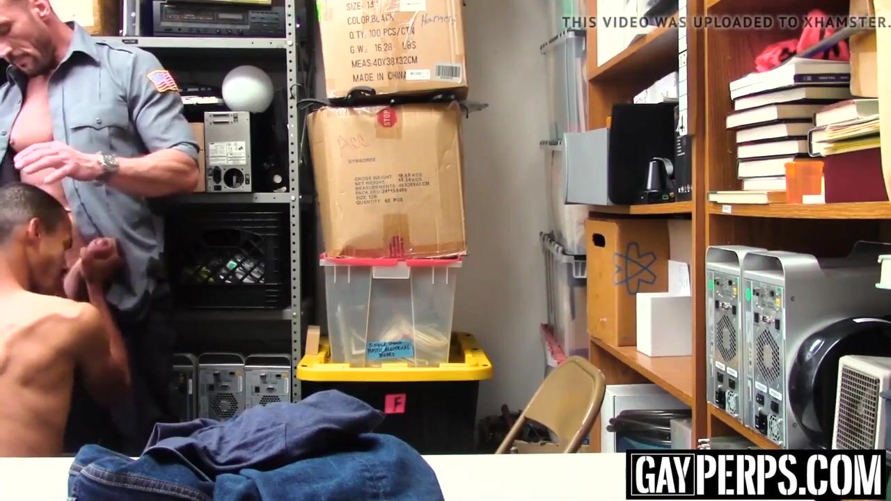 Security guard caught a young thief and gave him two options, to either call the cops or to suck his big cock and get fucked in the back room!