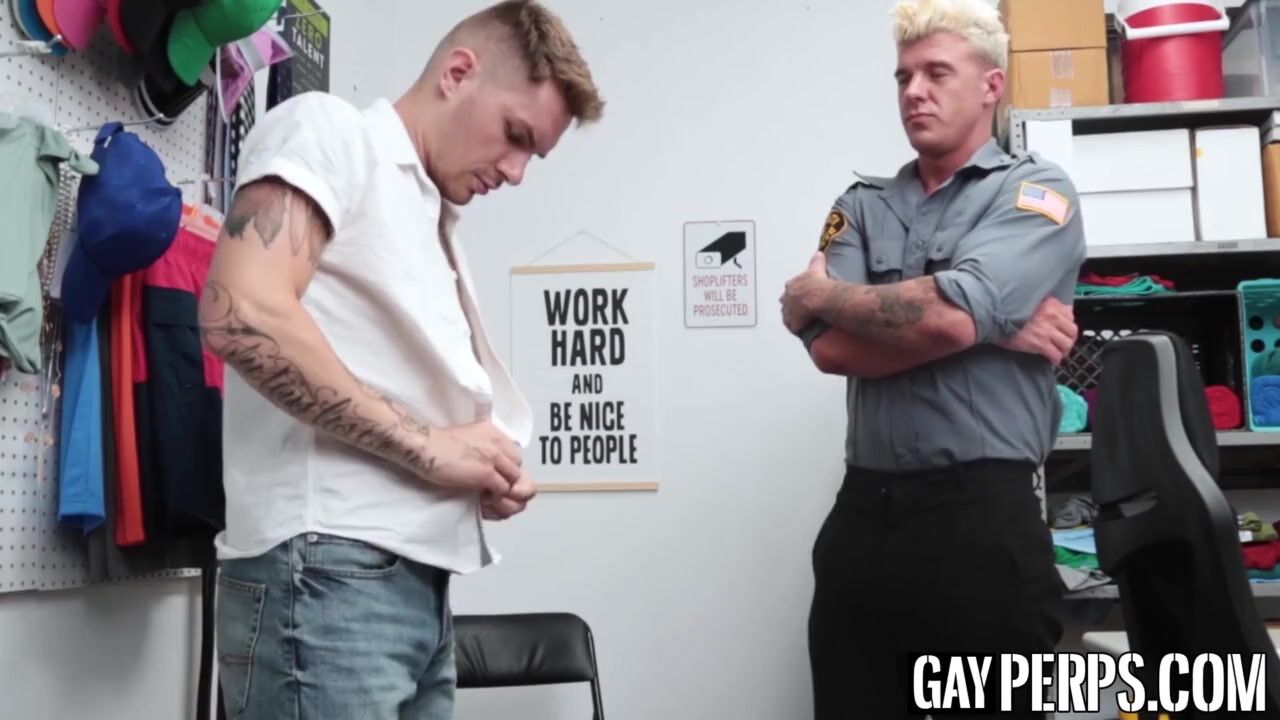 Uniformed hunk strips a thieving gay to search him before drilling his tight ass balls deep and raw.
