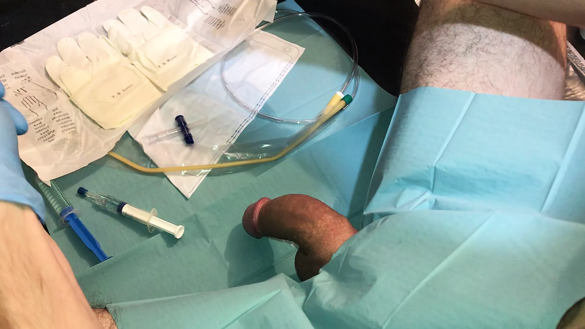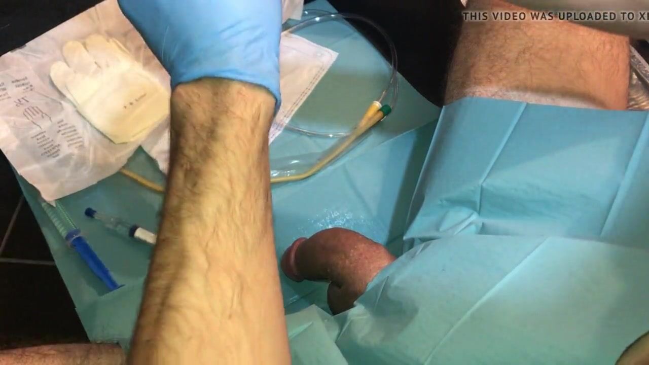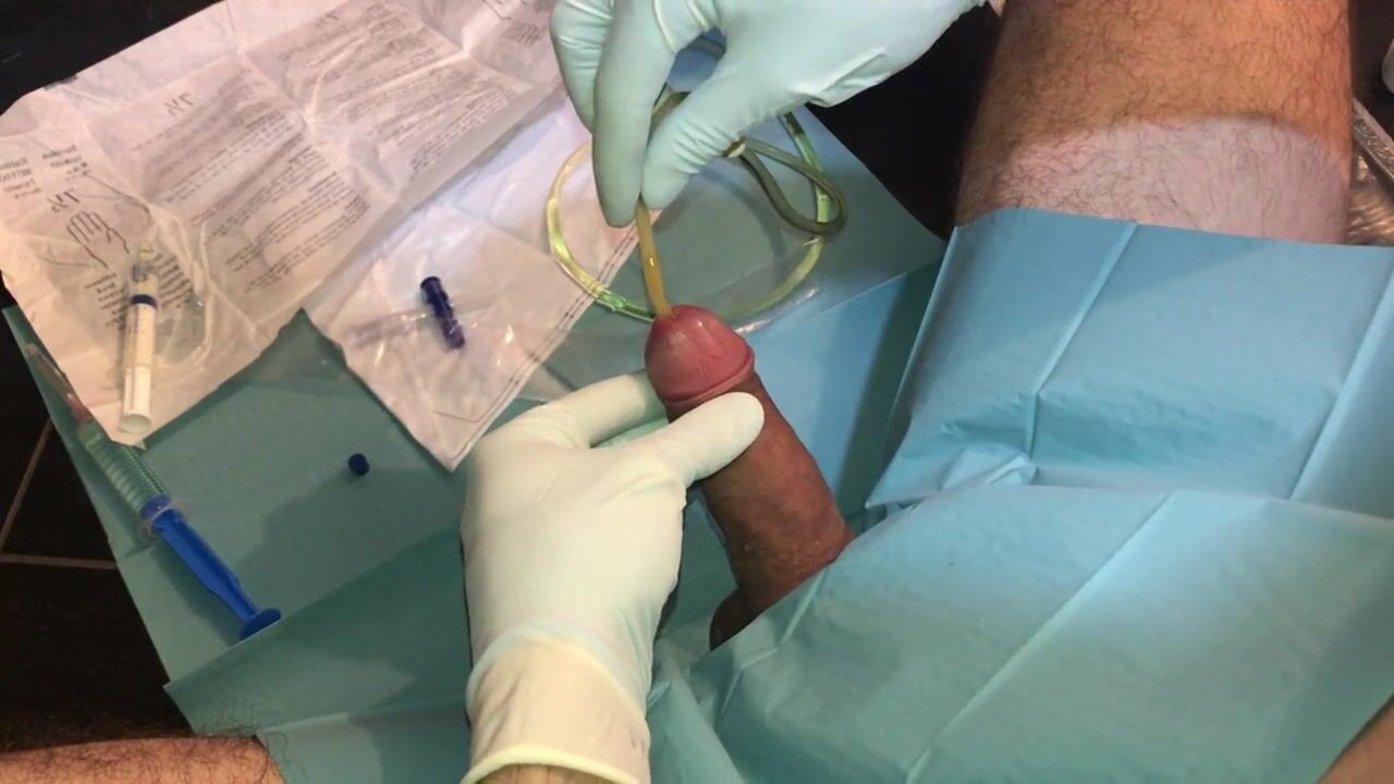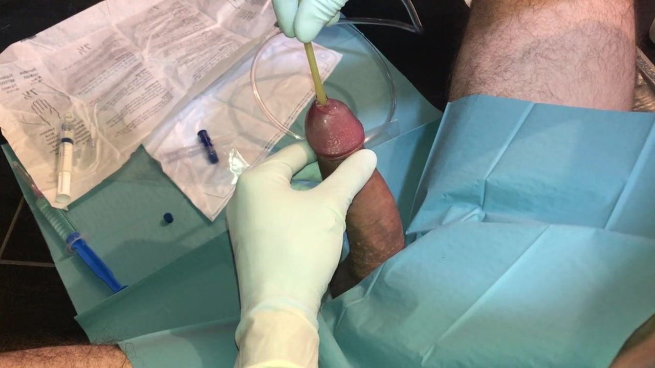 Satisfying penetration of a medical tool into a virgin butthole leads to explosive ejaculation through the urinary opening