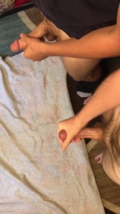 Two straight guys jerking their big cocks