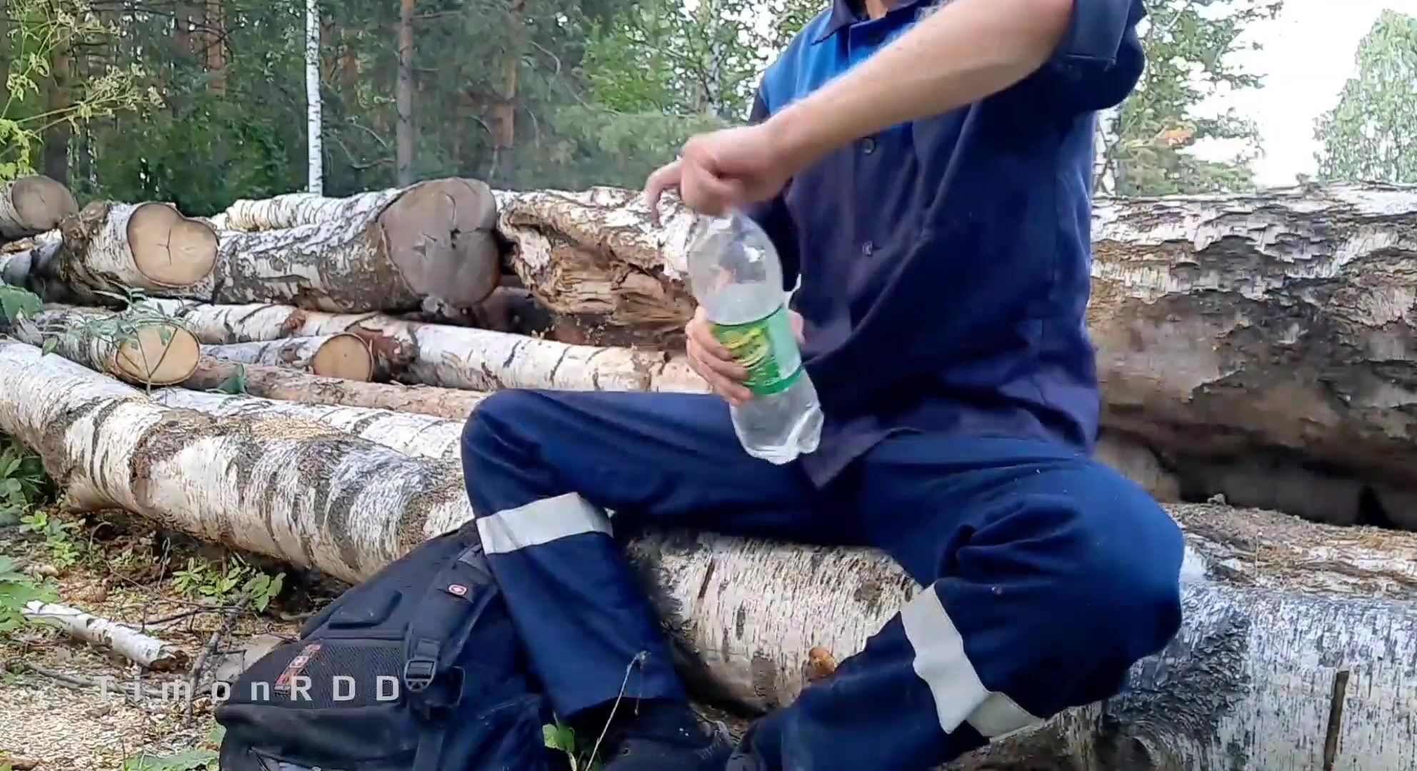 A lumberjack fucks a found masturbator, and a colleague watches him