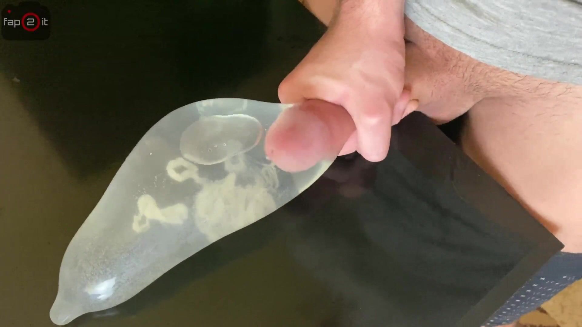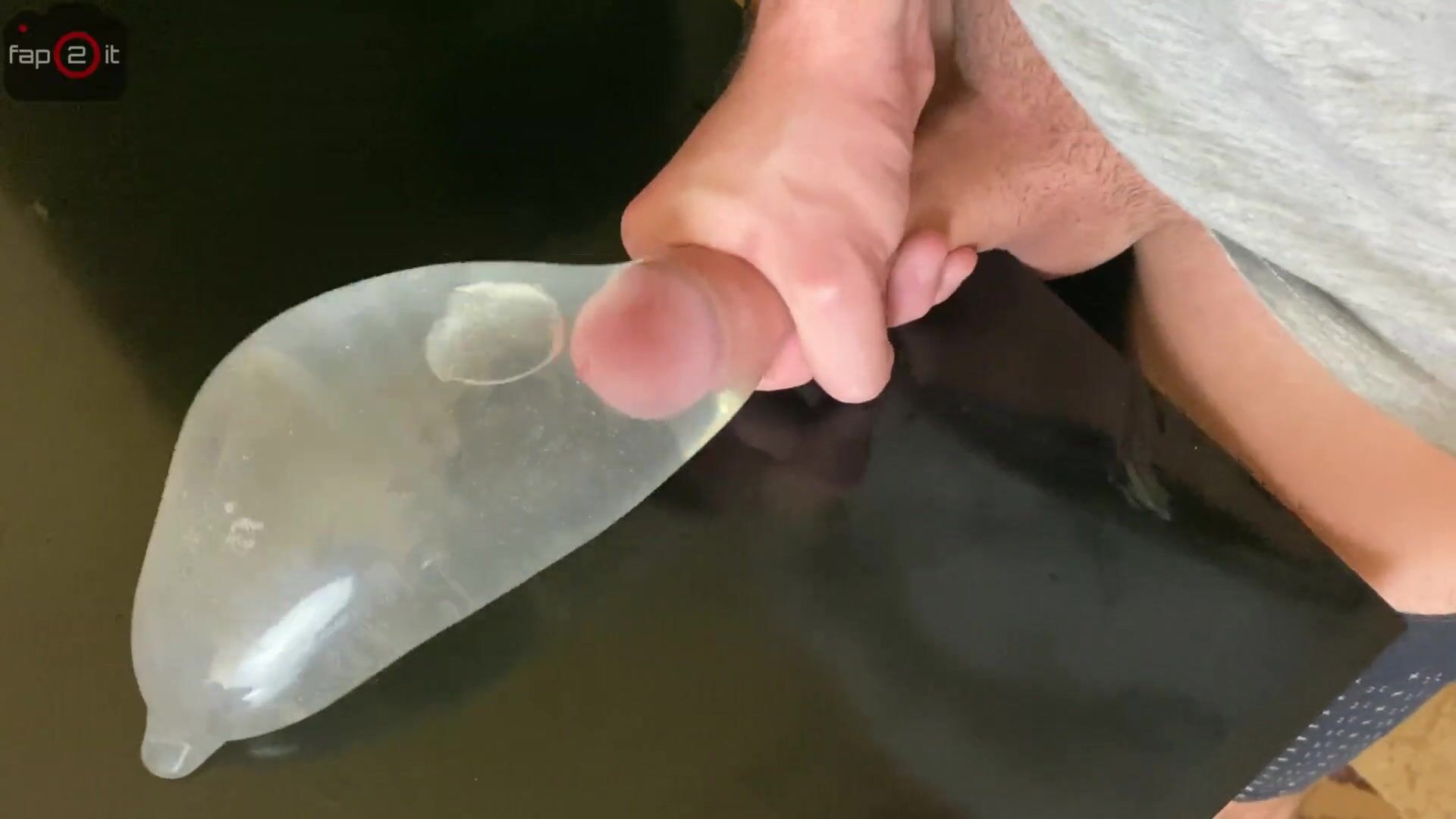 Horny Guy Moaning while Fucking his Own Hand and Cum alot inside Condom filled with Water - 4K