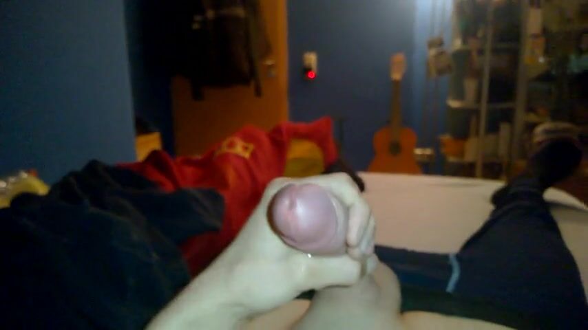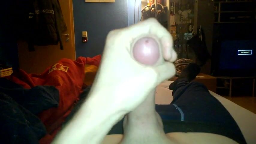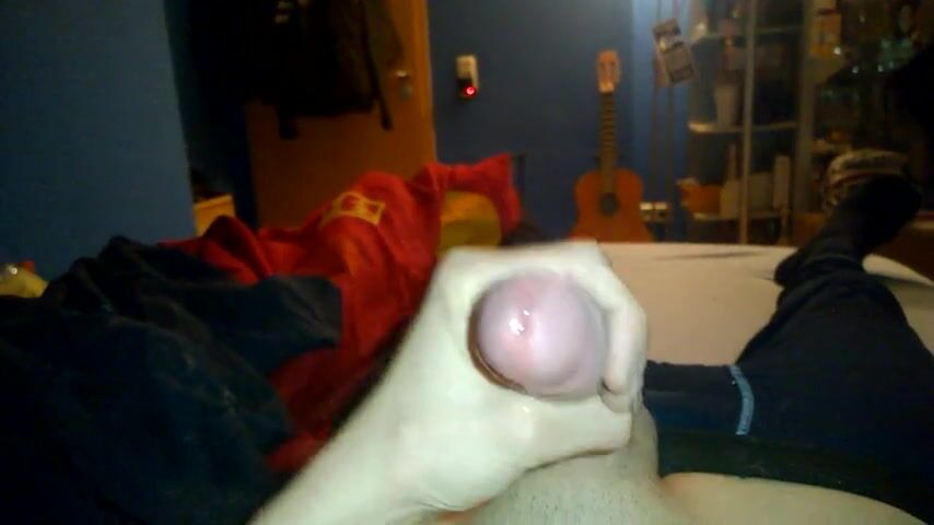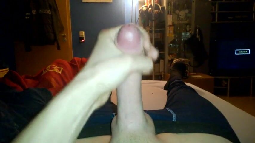 After being fucked, he ejaculates a good amount of cum.