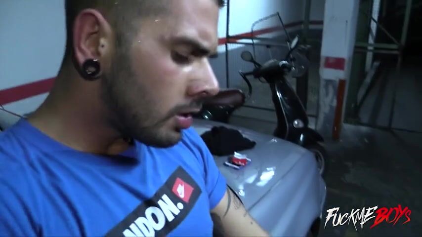 Three muscular men are jerking off in a garage surrounded by cars in an underground parking lot. Among them, two hooligans and a whore who is being sandwiched by the two others. These young Spaniards are very sexy and masculine.