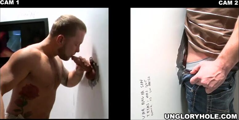 He thought he was going to get his dick sucked by a girl... But no, in a gloryhole, it's a guy who took the place of the girl and sucks him off enthusiastically.