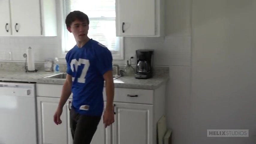 Football player Zach Taylor catches a glimpse of his roommate's tight little ass while he is doing some weight training. Mills didn't have enough time to react as the young footballer smacked him right in the groin, and the result was instant and painful.