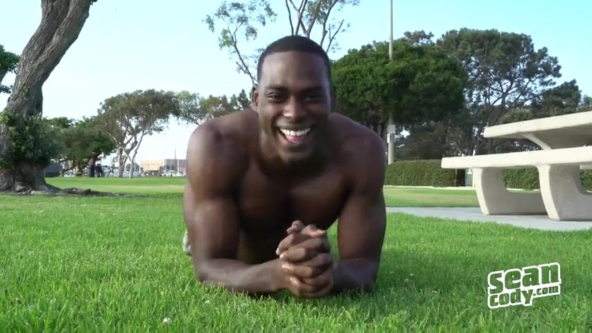 This sexy black guy is full of charm. After a brief conversation, he undresses and caresses his big dick, his ebony skin is muscular and hard. We get lost in front of so much beauty.