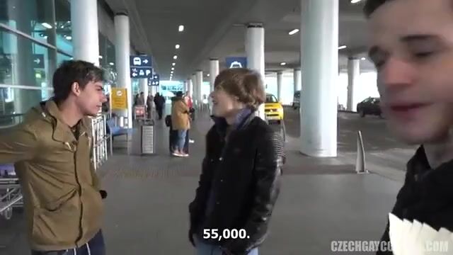 Two young students were walking through the airport when they noticed a booth selling tickets. They were attracted to it like moths to a flame. The Czech students had empty pockets, but their balls were full. It was in a nearby hotel room that their lust began. We masturbated their cocks to warm them up and all they needed was a handjob. This was the first time they ever sucked a tight ass!