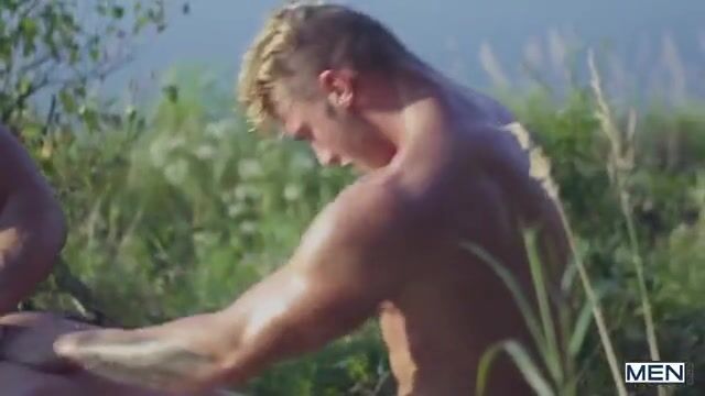 Bellamy is really excited to see Jack and William sucking each other not far from him. He spies on them and gets caught, the two alpha males take him along the river where he gets fucked by the duo. The two guys take turns to kiss his muscular ass.