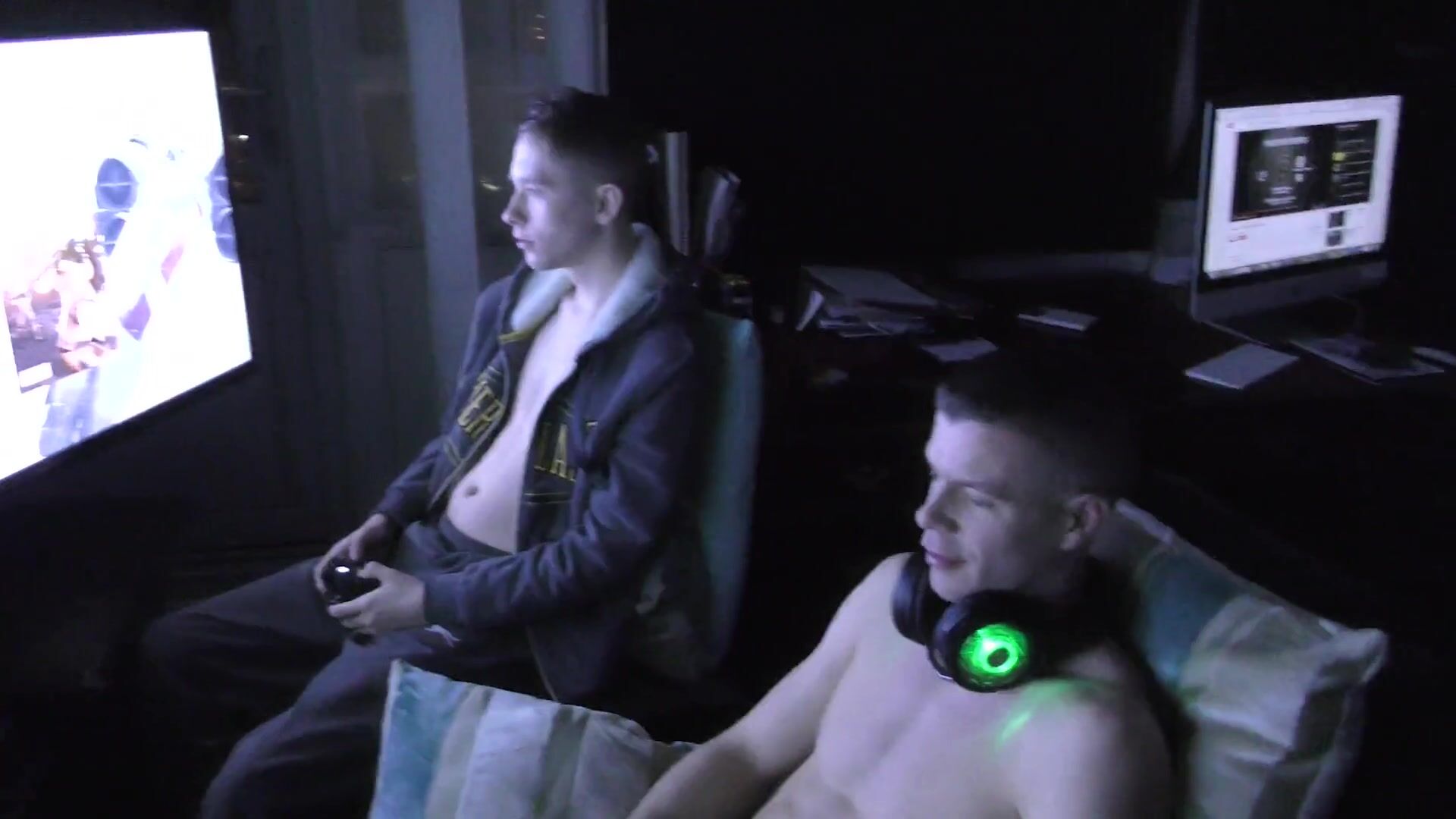 3 UK Lads Playing Xbox Unplanned Breeding Creampie
