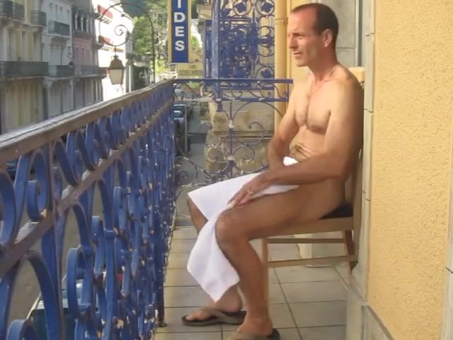 As I stroll on the balcony of a hotel room, fully nude during the daylight hours, my cock becomes hard and erect in anticipation for what's to come.