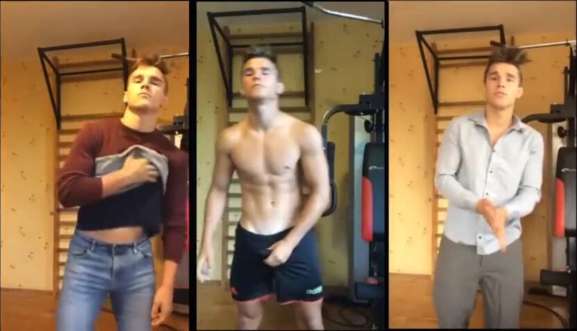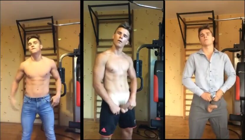A young gymnast masturbates regularly at the gym. Instead of filming three separate porn videos, he combined them into one simultaneous scene.