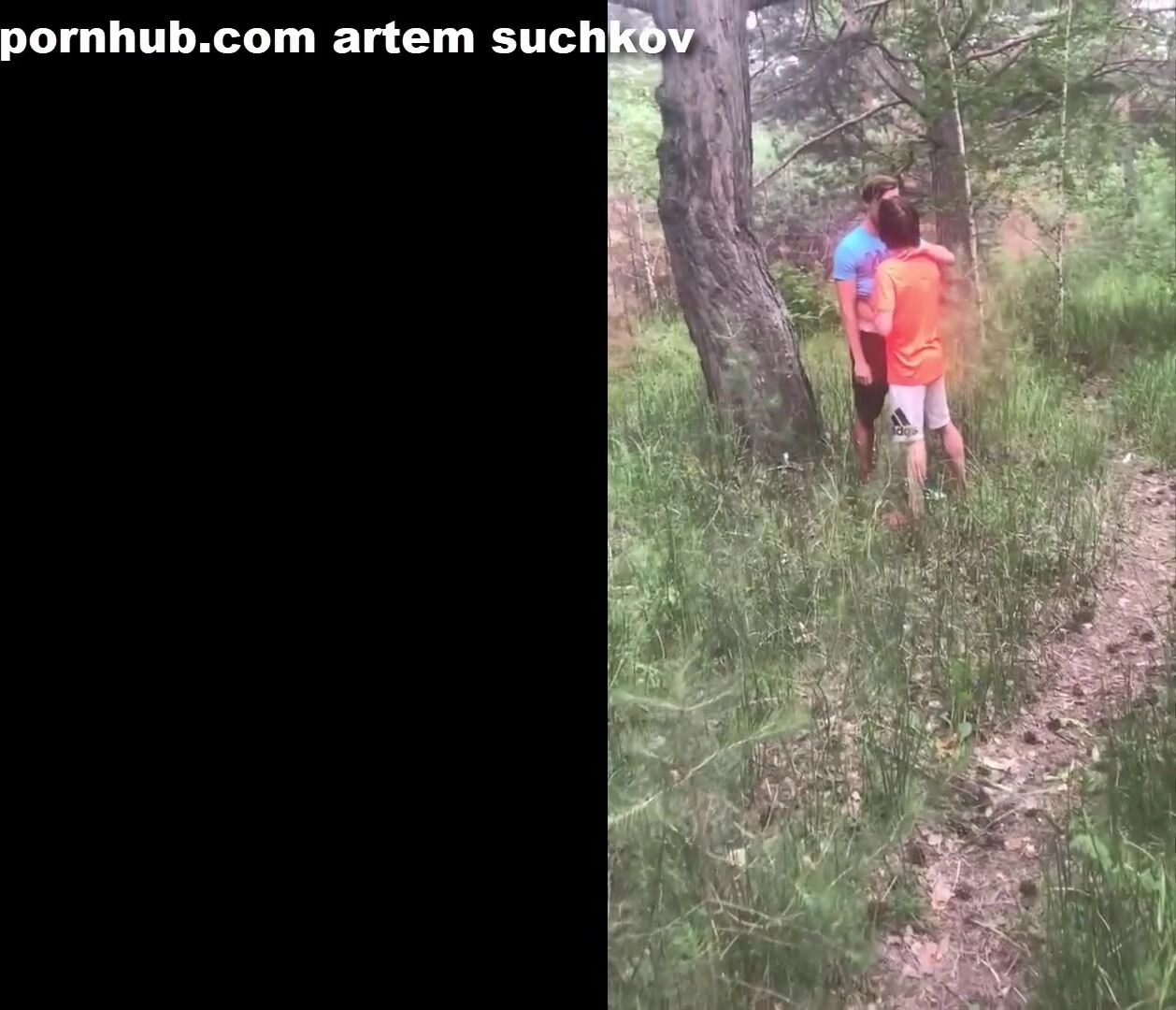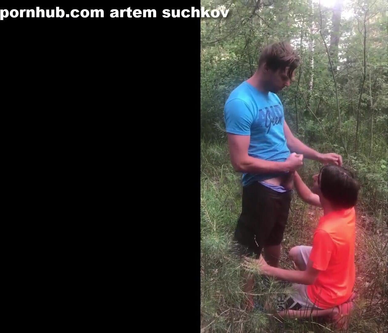 cumshot on the face in the forest