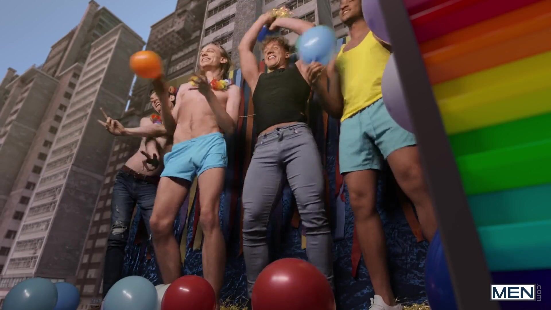 Men - As they dance atop the pride parade float, Trent King and Felix Fox hit it off and cum hard