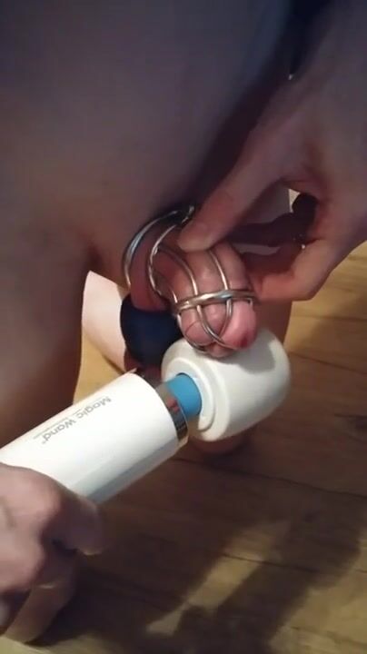 Slave in chastity and plugged, ordered to edge and cum