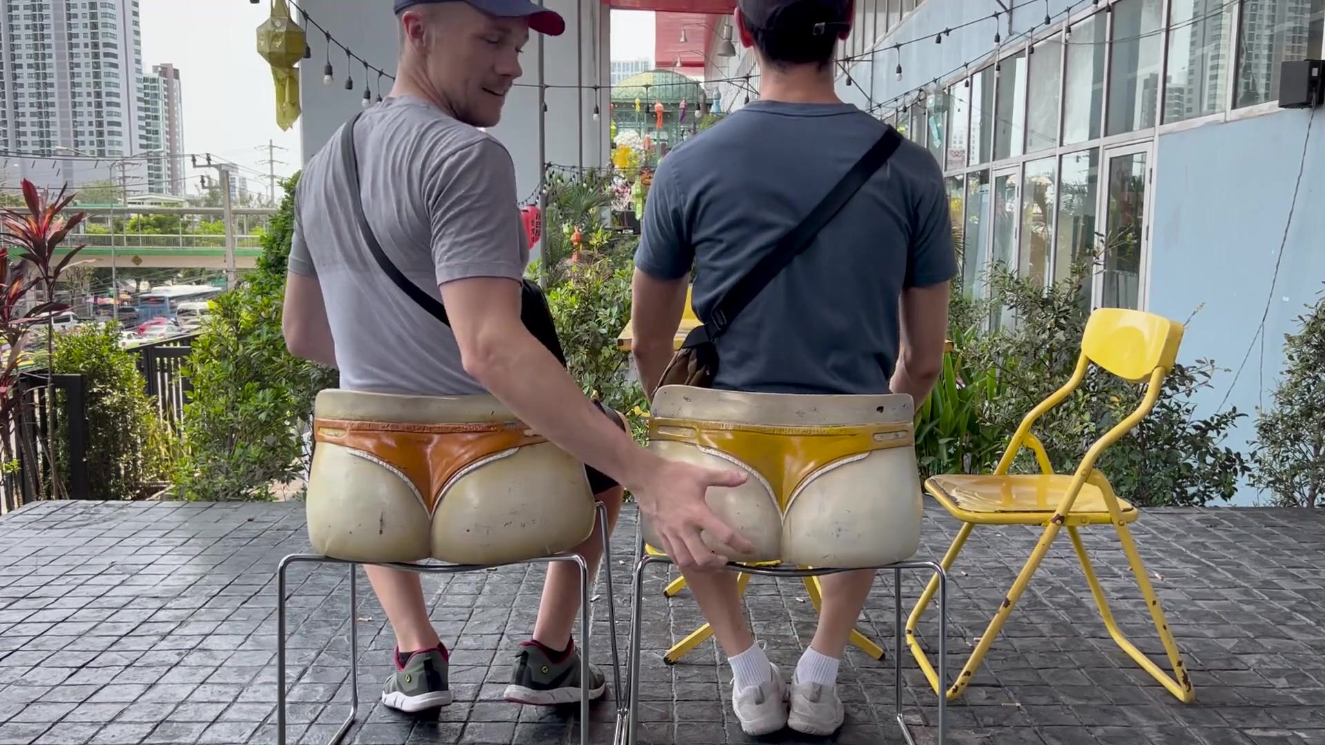 Joshy and Locky explore the Chatuchak weekend market in Bangkok, bringing home snacks that they bought a long the way. Joshy loves it when Lockys huge white cock reaches the edge of Joshy's balls, sliding in and out of his thigh, turning Joshy rock hard. The two were so horny and in tune with one another, they both came at the same time, pure chemistry.