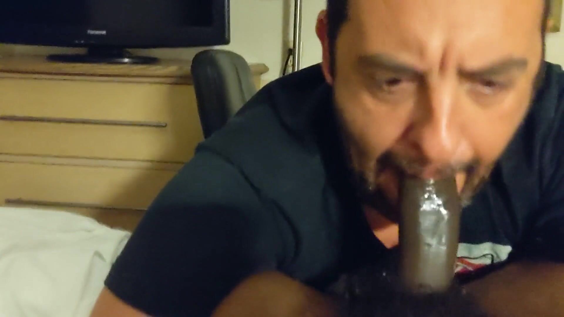 Sleazy Faggot Worshipping That Louisville Slugger Black Cock Like A Boss