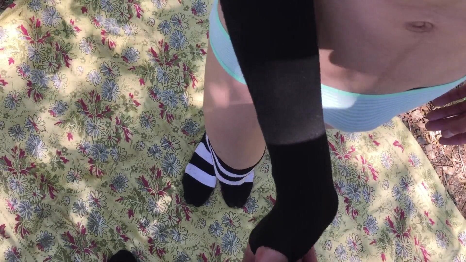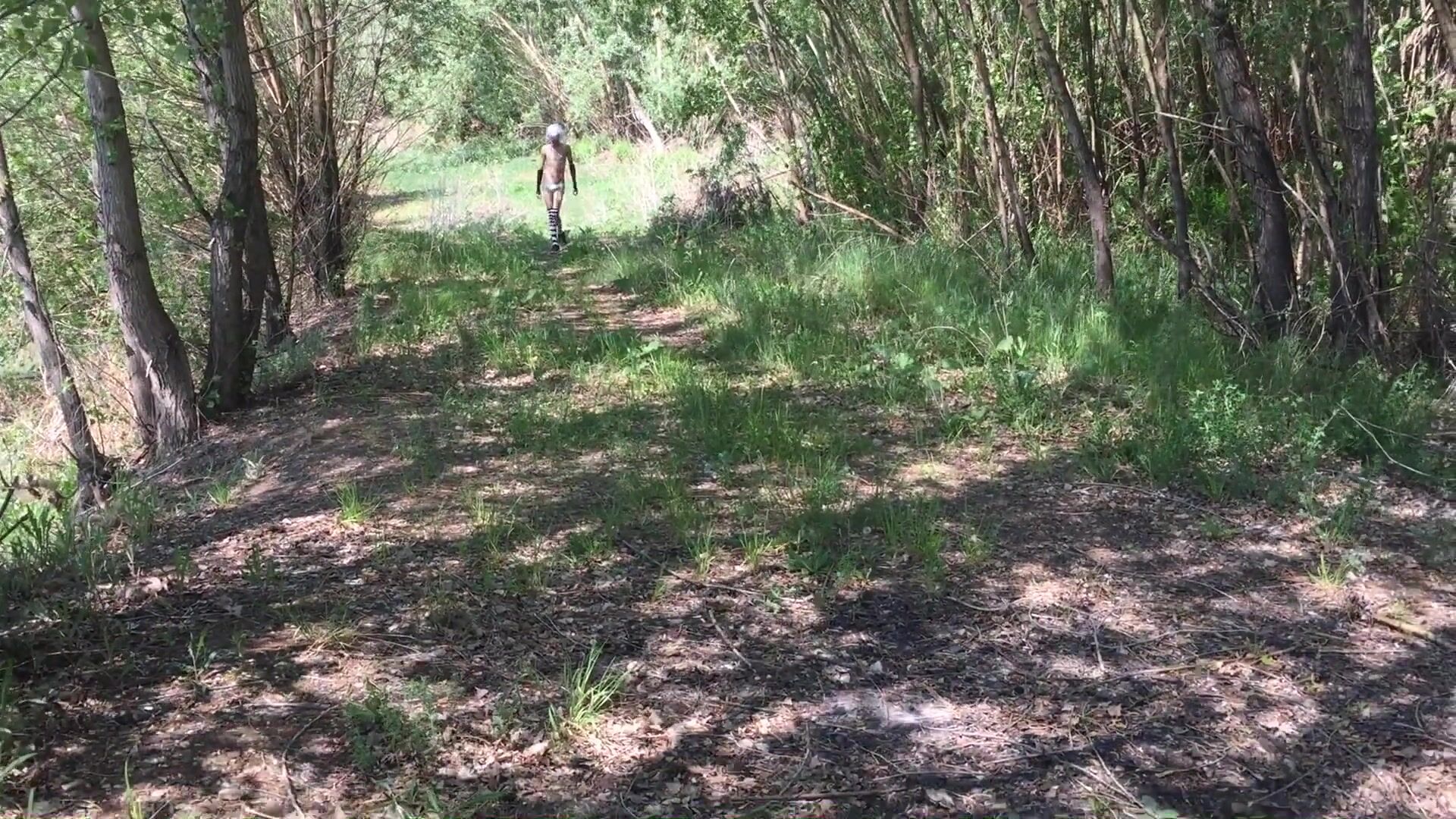 Sissy femboy enters public forest to suck big cock