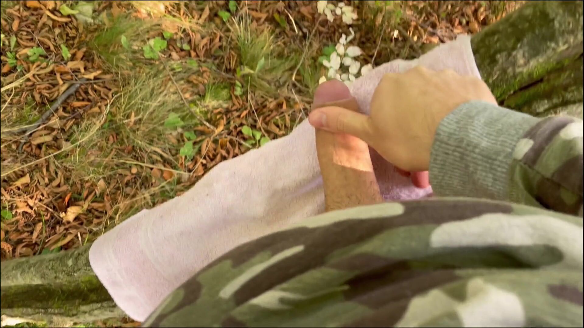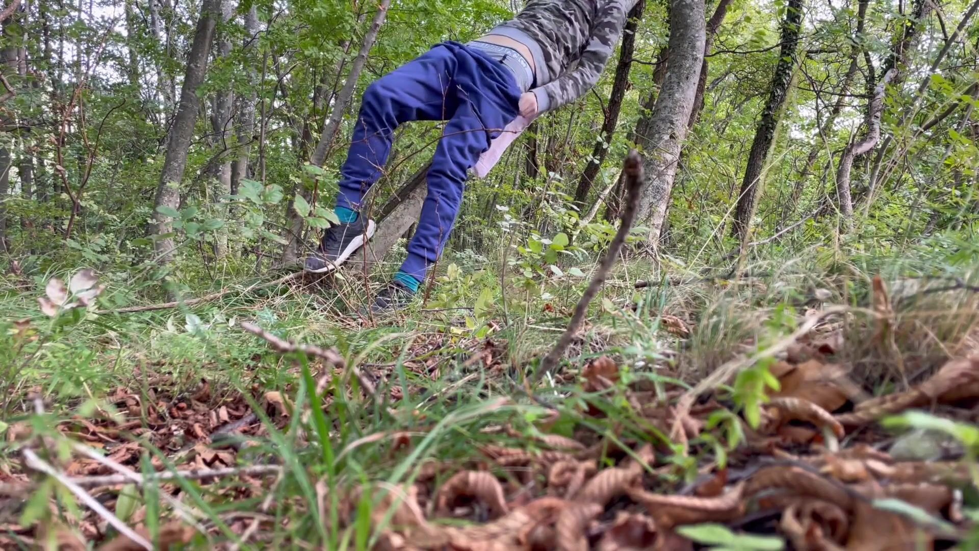 18 years old naughty boy jerks off on a tree